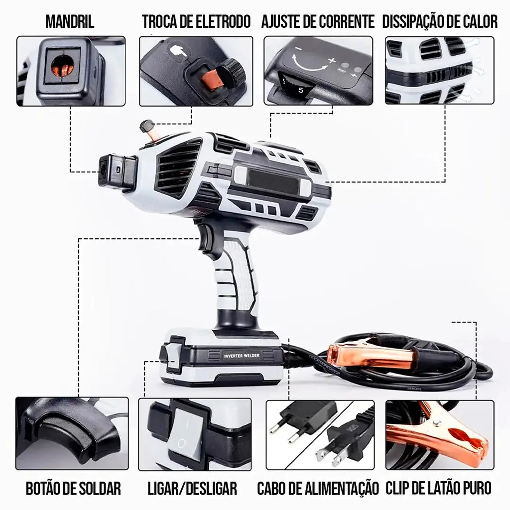 Com esse Soldador Profissional Portátil você pode realizar soldagens rápidas e precisas em aço inox, ferro, aço carbono e muito mais. Portátil e leve, ele substitui máquinas de solda volumosas sem perder eficiência, sendo perfeito para profissionais e iniciantes que buscam praticidade e desempenho!